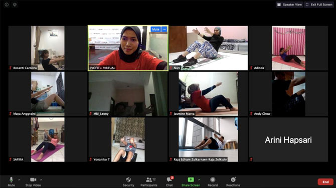 Maybank Indonesia senantiasa mendukung Maybankers untuk tetap dalam kondisi sehat khususnya dalam situasi pandemi Covid19 seperti sekarang ini. Maybank Indonesia dalam hal ini berkomitmen untuk memutus penyebaran Covid19, sehingga beberapa kegiatan serta aktifitas termasuk didalamnya adalah kegiatan olah-raga yang biasanya dilakukan di Kantor Pusat, kini dilakukan secara virtual. Kegiatan ini diharapkan dapat meningkatkan produktivitas Maybankers yang bekerja di rumah, agar senantiasa aktif dan bugar selama di rumah.