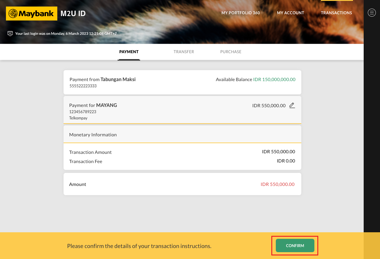 Enter the TAC that has been sent to your number, then click “Confirm” to continue.