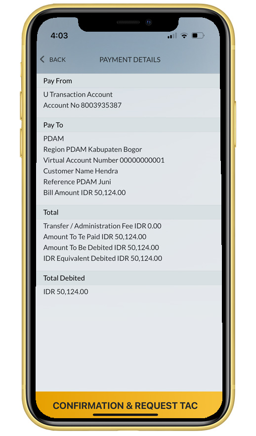 On the transaction confirmation page, check the payment details once again and if appropriate please click “Request TAC”.
