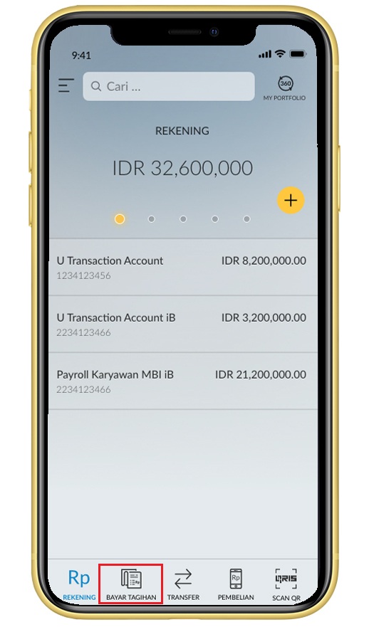 Klik pilihan menu ‘Pembayaran’ pada tampilan rekening |
