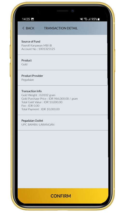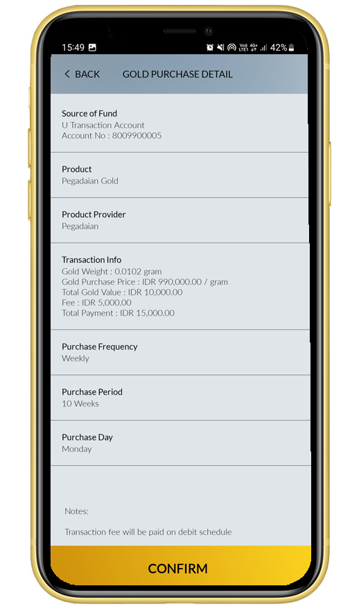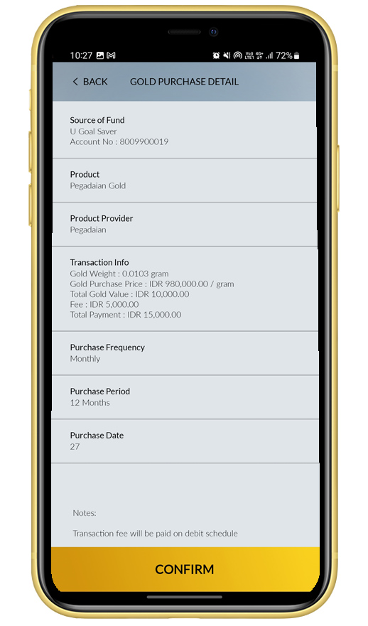 Verifying detail Gold Saving Transaction and Click “Confirmation” |