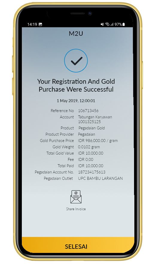 Download M2U ID on Playstore/App Store and enjoy Gold savings right from your couch!