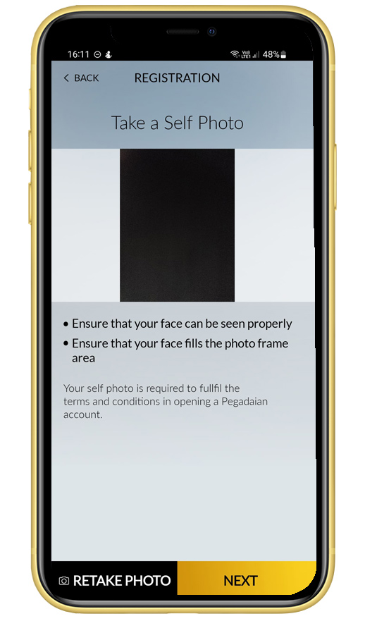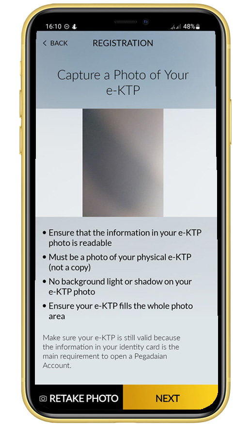 Click "Take Photo" and make sure the e-KTP is clearly visible in the camera frame on the screen, then click “Next”