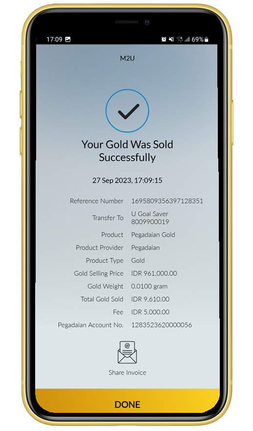 Your gold was sold successfully After successful transaction, Customer will receive push and email notification.