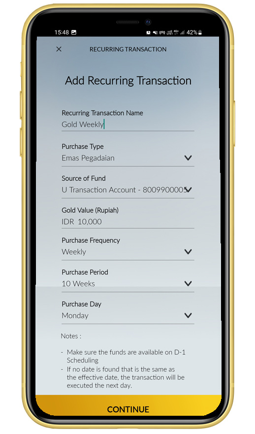 You can read the information regarding Pegadaian Gold Savings Products and Services then click “Continue” |