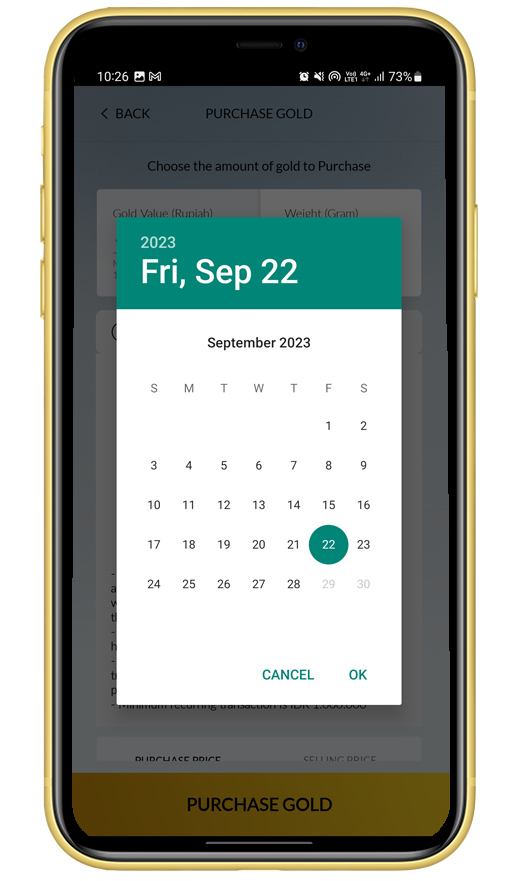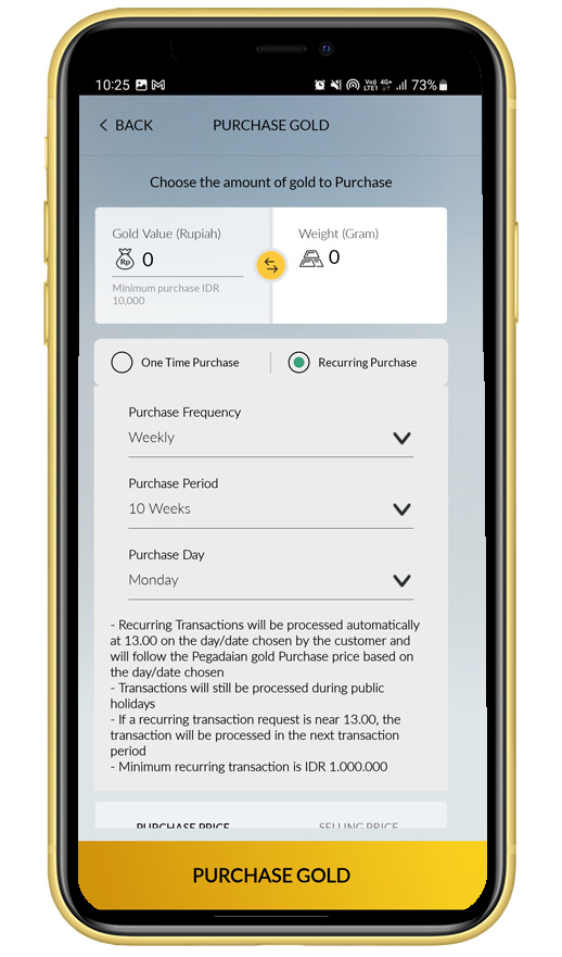 Choose recurring purchase. Input Gold amount (in IDR/in grams) |