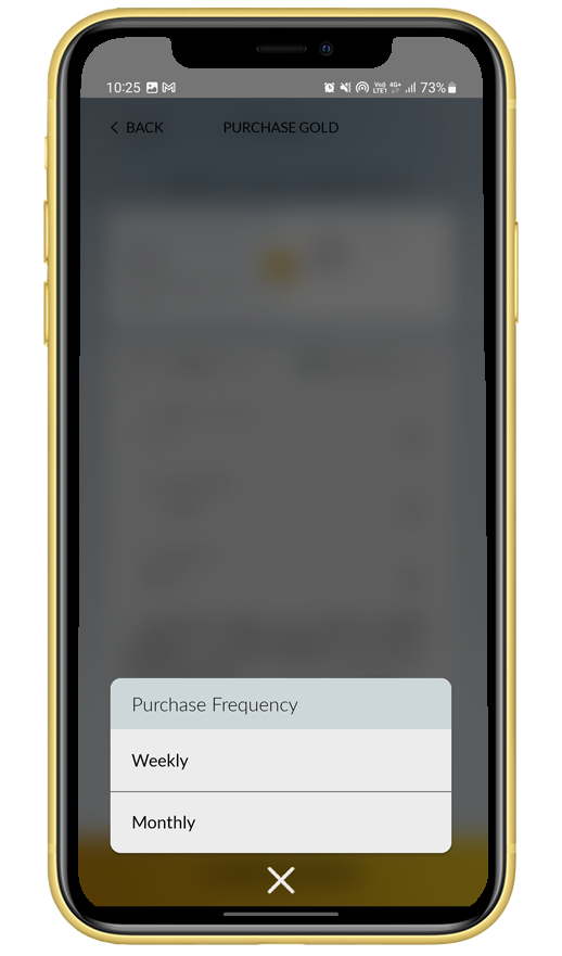 Swipe to the “wealth” menu on the home page, then click “+”button or click on Your Gold Portfolio Recurring Gold Purchase can also be accessed by clicking Purchase menu on account dashboard.
