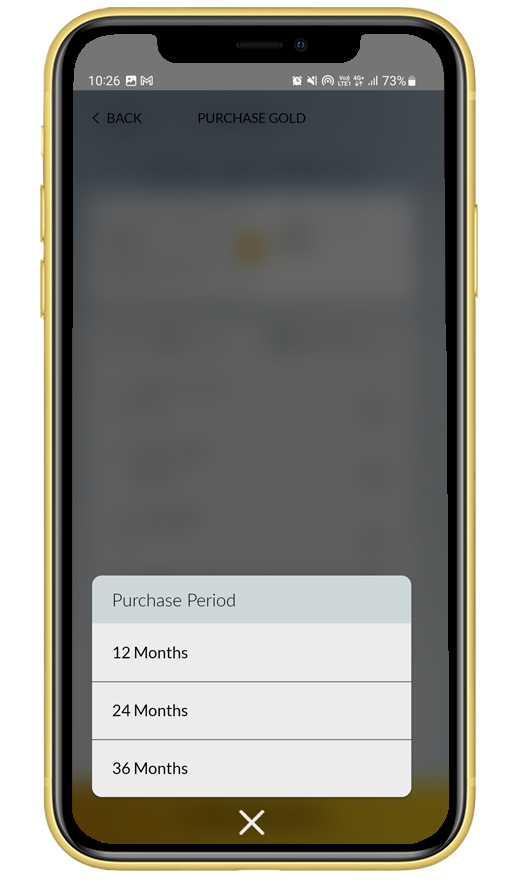Swipe to the “wealth” menu on the home page, then click “+”button or click on Your Gold Portfolio |
