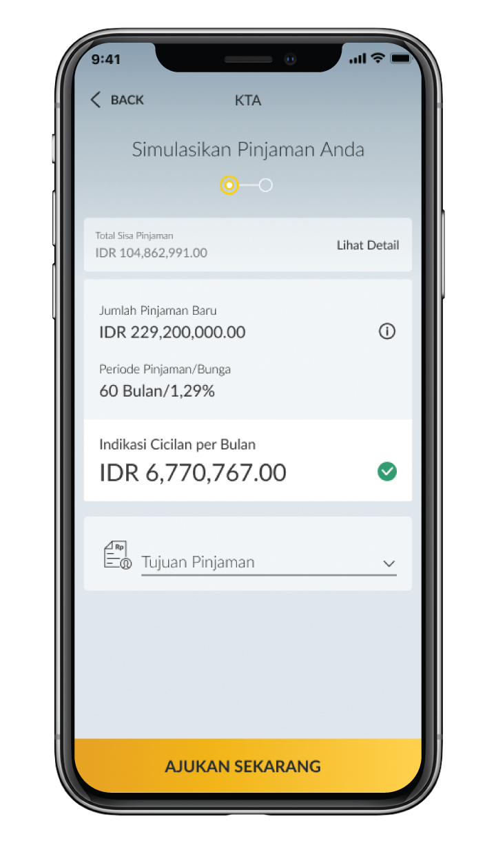 Nasabah mendapatkan penawaran Limit Pertama kali Pinjaman KTA. Nasabah tidak dapat mengubah jumlah dan tenor yang diberikan.