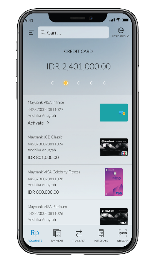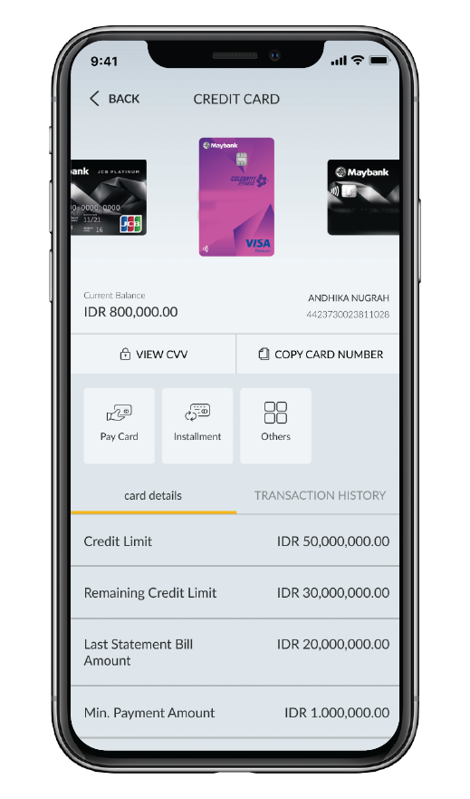 On the account dashboard page, swipe left to the credit card dashboard and select the credit card you want to block when the card is lost. Credit Card blocking can also be accessed via the burger menu and select card management