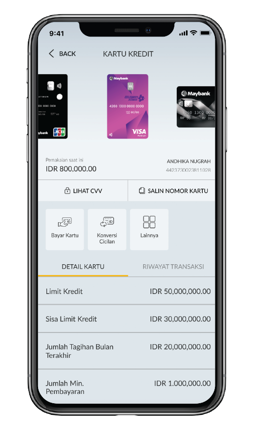 Pada halaman dasbor rekening, geser kiri ke dasbor kartu kredit dan Pilih kartu kredit yang ingin dibuka blokirnya pada saat kartu telah ditemukan. Buka Blokir Kartu Kredit juga dapat diakses melalui burger menu dan pilih manajemen kartu