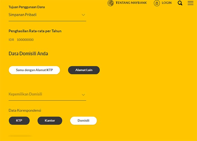 Isi “penghasilan rata-rata”, “data domisili” & “korespondensi” dan klik “LANJUT”.