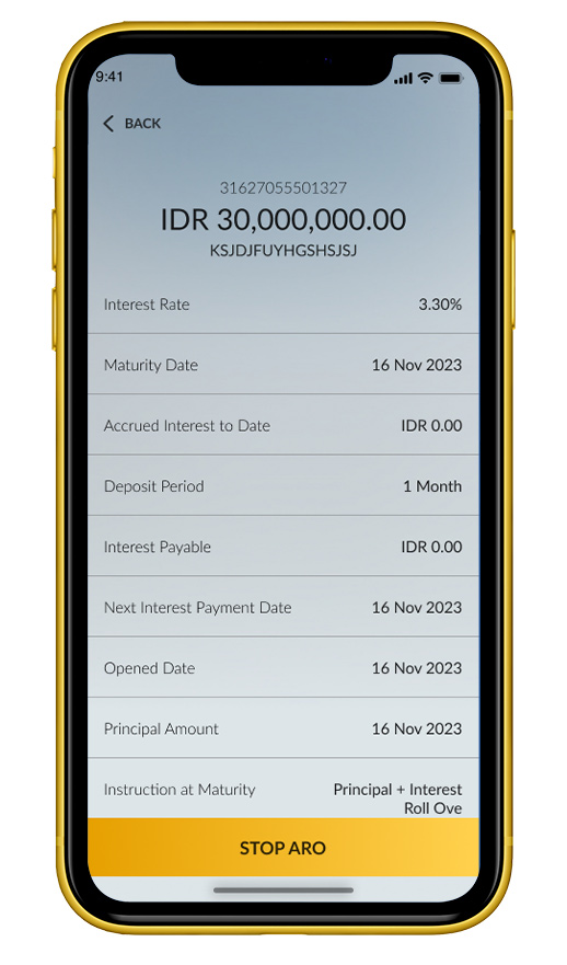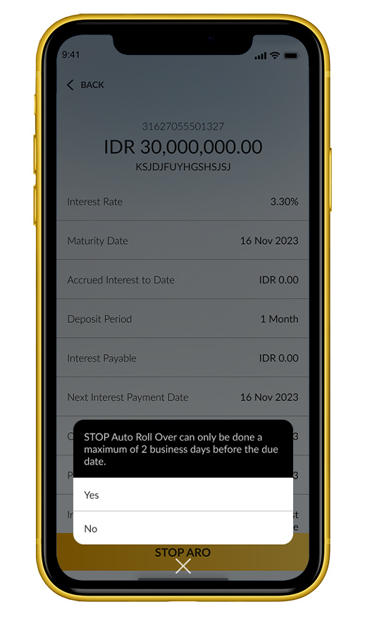 3. Select the time deposit you would like to stop ARO |
