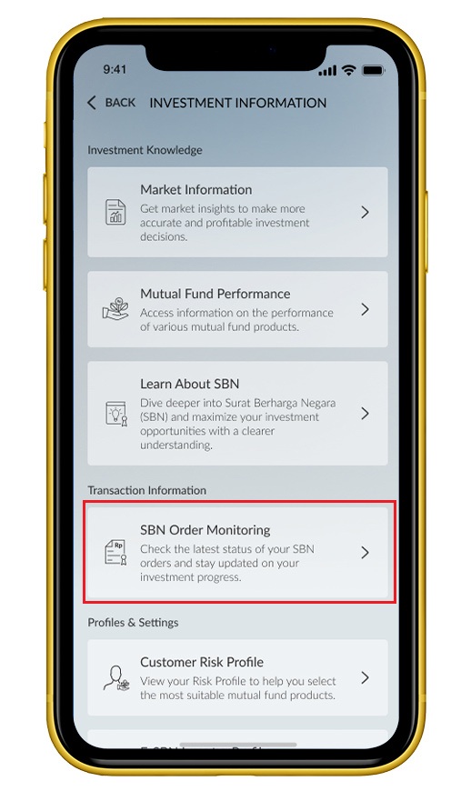 Login to M2U ID App. On the main page, swipe right to access the ‘Wealth’ menu.