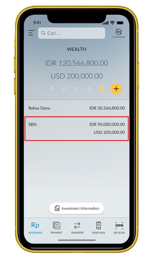 In the ‘Investments & Insurance’ menu, click on the ‘SBN’ portfolio