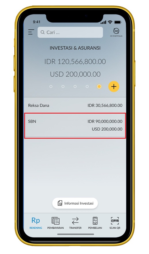 Pada menu ‘Investasi & Asuransi’, lalu klik portfolio ‘SBN’