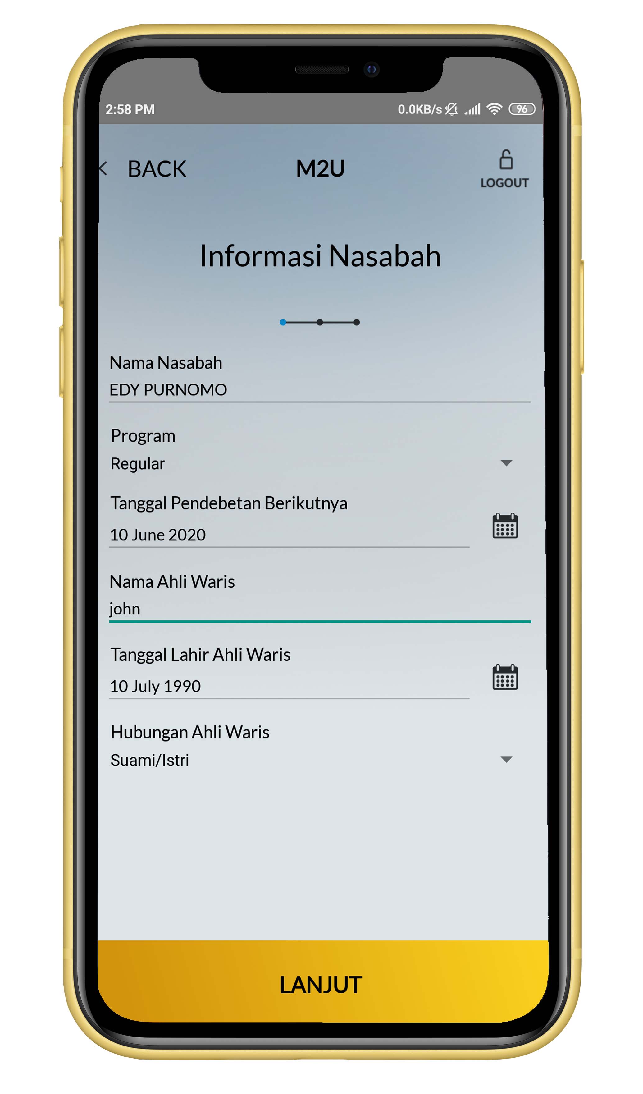 Choose 'Regular' or 'Sharia' Savings type according to your needs and click on the selected icon.