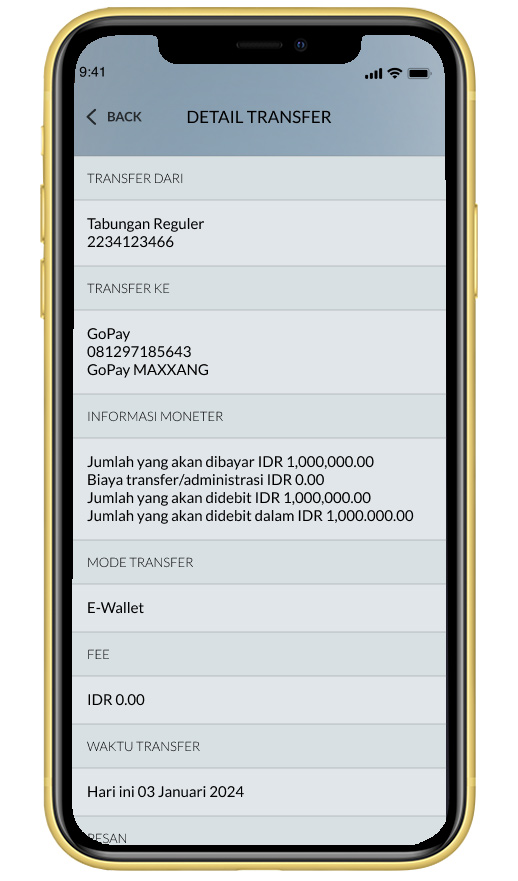 Cek kembali nominal jumlah yang ingin ditransfer, lalu klik ‘Proses’ |