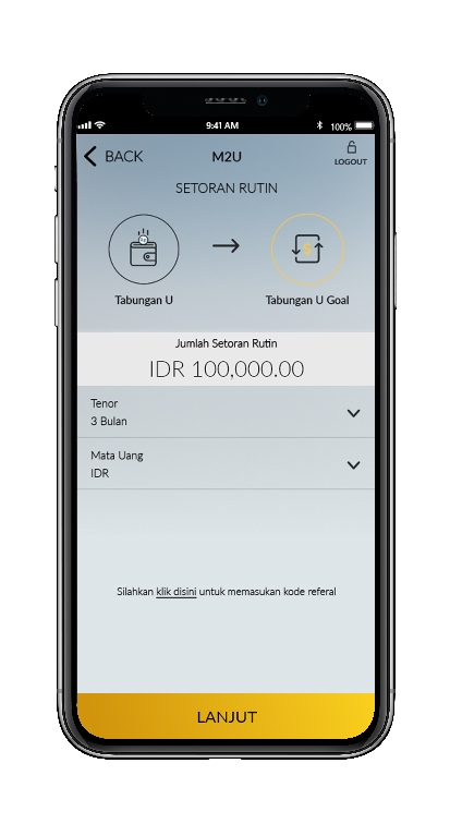 Pilih rekening dari Maybank Tabungan U atau U iB sebagai rekening sumber pendebetan rutin.