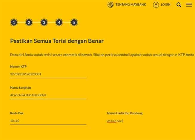 Pastikan “Nomor KTP”, “Nama Lengkap”, “Tanggal Lahir“ dan “Kewarganegaraan” sudah benar. Kemudian isi “Kode Pos” sesuai alamat KTP, “Nama Ibu Kandung”, “Pendidikan” dan klik “LANJUT”. |