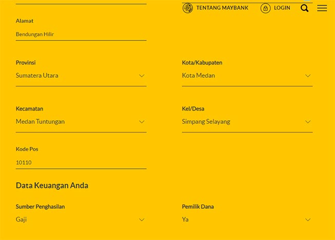 Isi alamat informasi pekerjaan sesuai “Alamat di KTP” dan klik “Data Keuangan”.