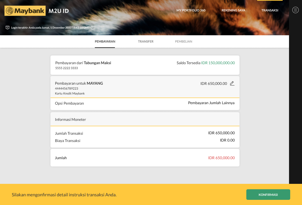 Check the transaction details. If everything is correct, click “Konfirmasi”