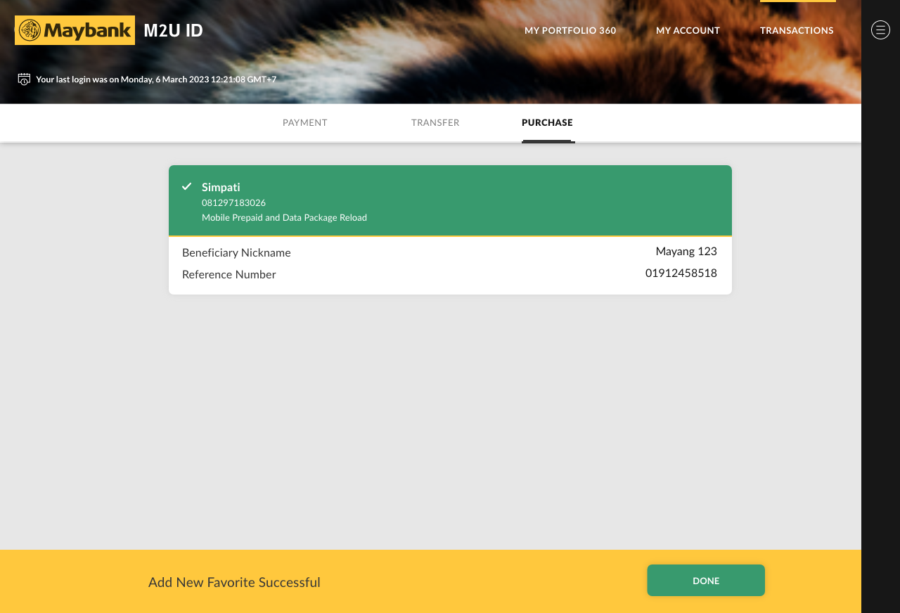 After logging into your account on the M2U ID page, you can click 'Transactions' on the top right. After that, click the 3 dots next to the list of favorite transactions