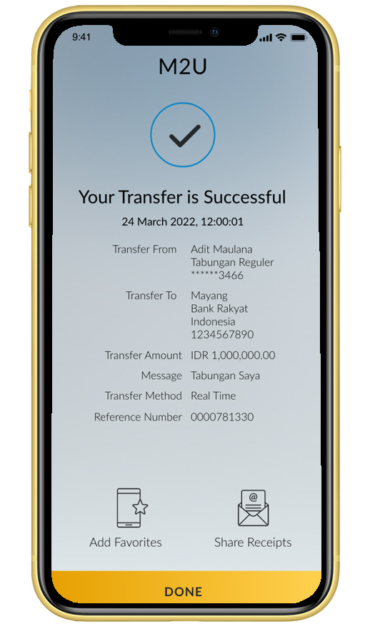 Review the transaction details again in M2U ID App, then click ‘Konfirmasi’ if everything is correct. |