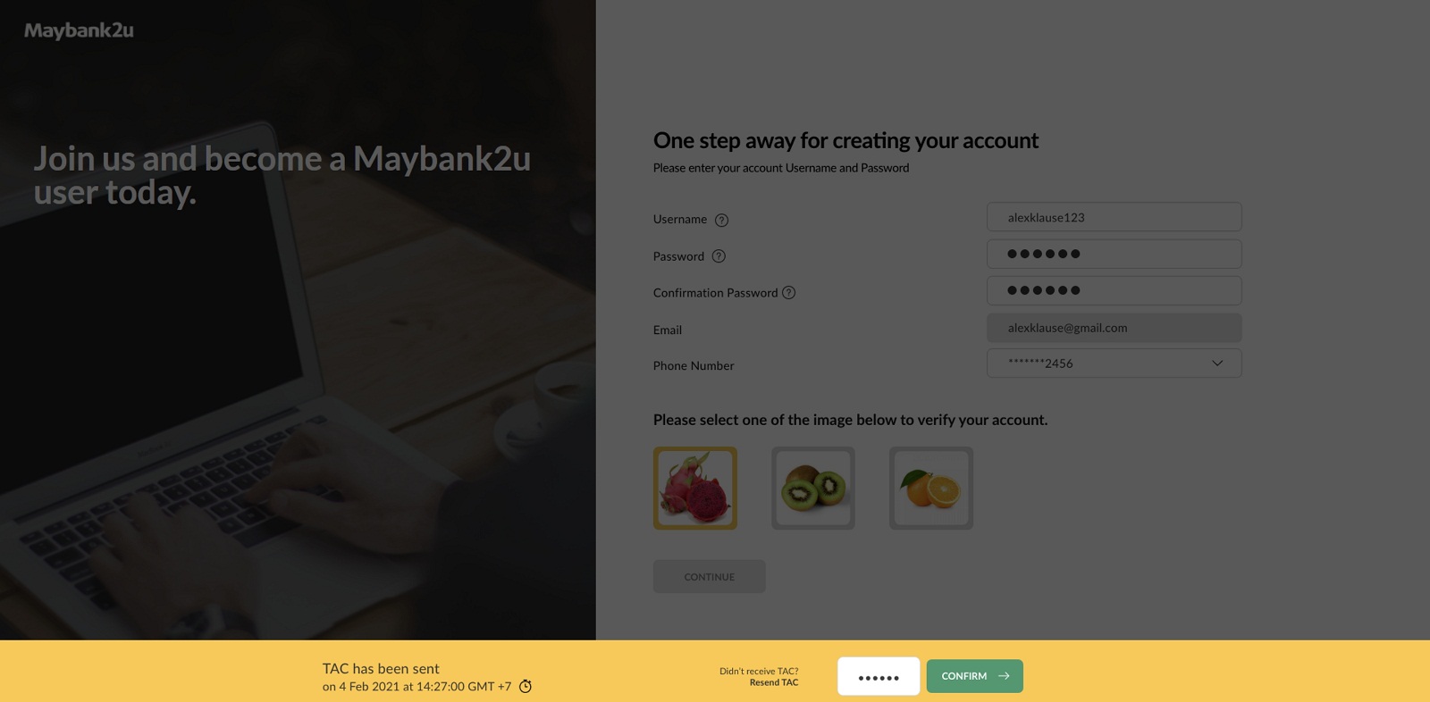 Input the SMS Token / TAC that has been sent to the registered phone number you have chosen in the previous step. Choose “OK”