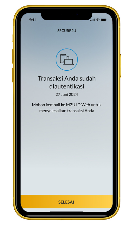 Once the transaction has been successfully authenticated, return to M2U ID Web to complete your transaction.