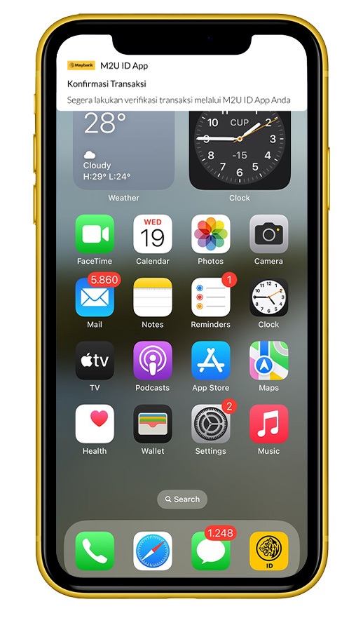 Confirmation will be done via M2U ID App. Open the pop-up notification from M2U ID App on your smartphone.
