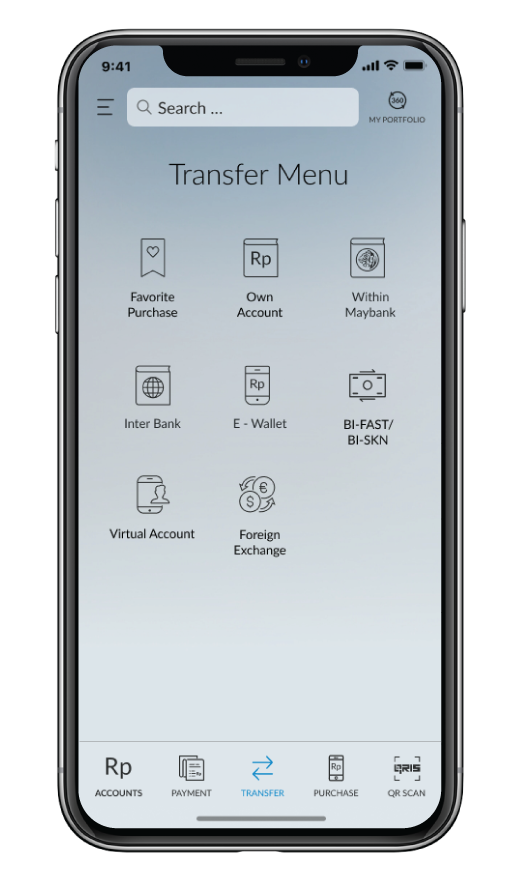 Log in to the M2U ID App. On the home page, select the ‘Transfer’ menu |