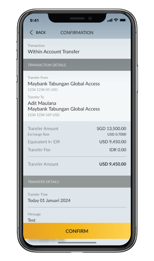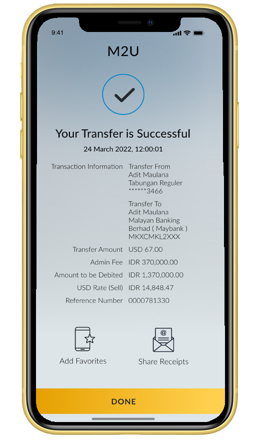 For SWIFT transactions exceeding the equivalent of USD100,000 per month, Bank Indonesia (BI) regulations apply. Customers may be required to upload supporting documents via the M2U ID App.