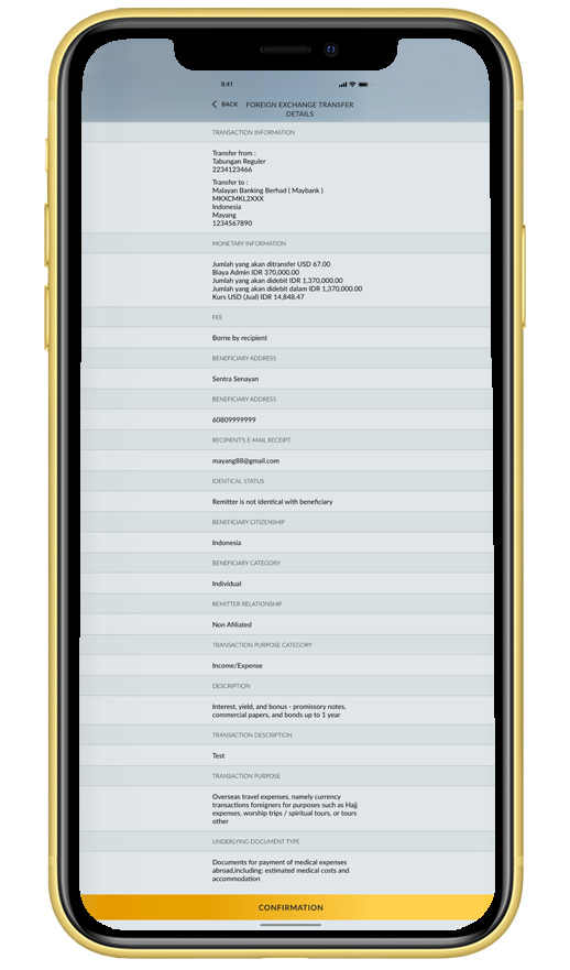 Underlying Document requirement for foreign exchange transaction through M2U ID App