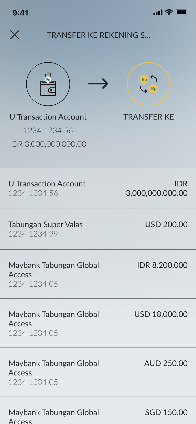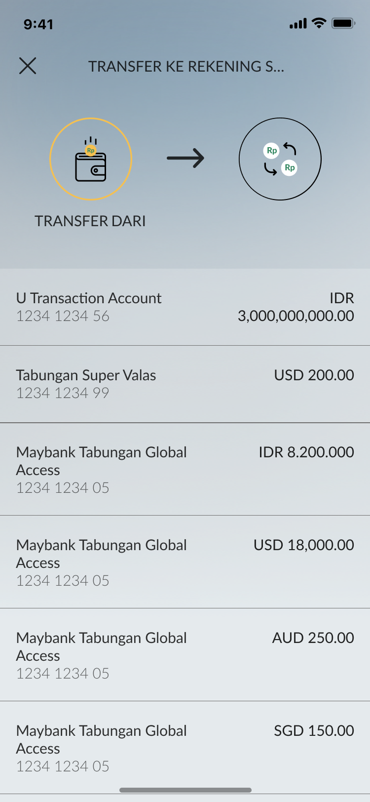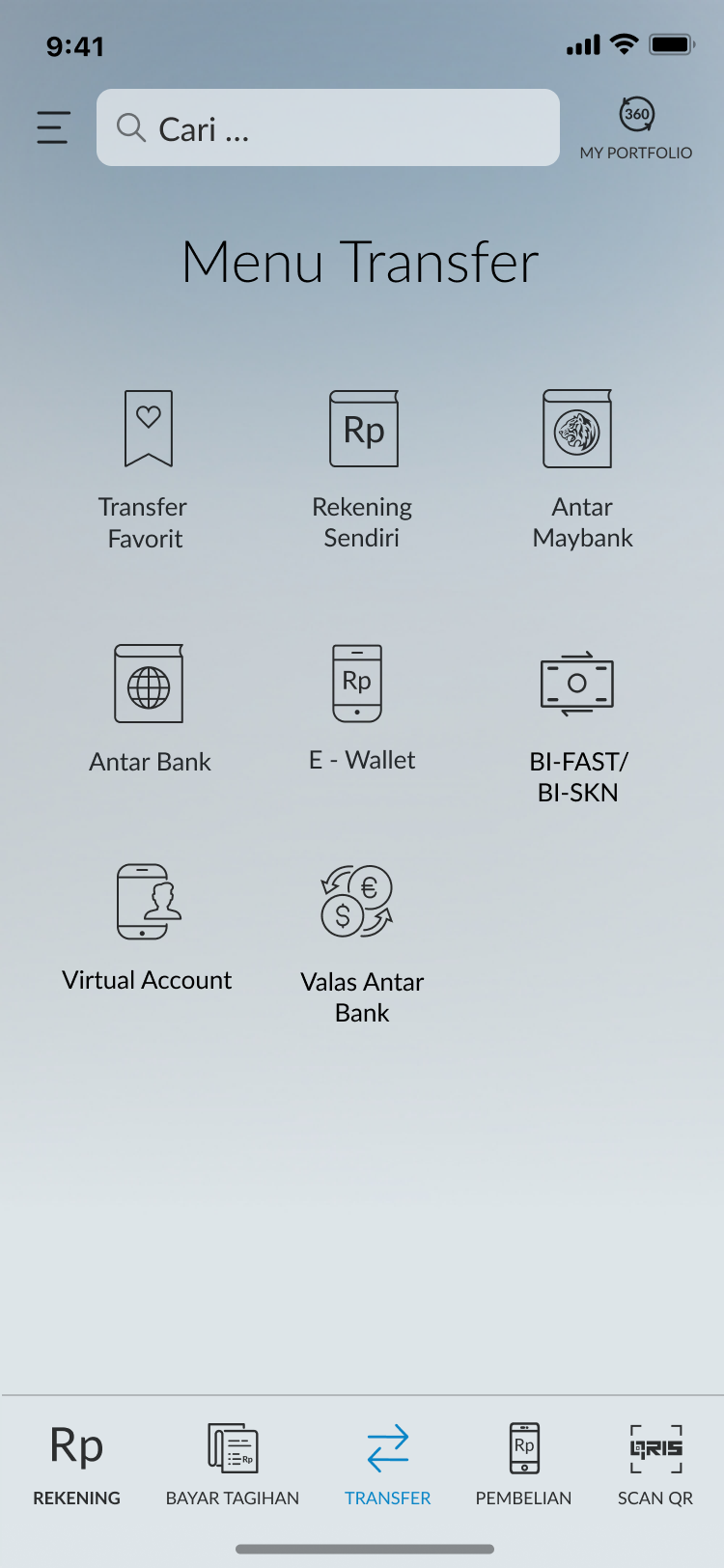 Login to M2U ID App and select 'Transfer' |