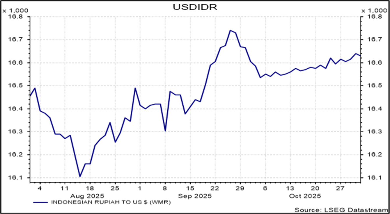 Pemerintah AS masih mengalami penutupan sebagian (government shutdown) yang kini memasuki bulan kedua, dan berpotensi melampaui rekor terlama sepanjang sejarah yang terjadi pada akhir 2018 hingga awal 2019 selama 35 hari. Namun, fokus utama pasar minggu ini tertuju pada hasil rapat FOMC, di mana The Fed kembali memangkas suku bunga seperti yang telah diperkirakan pasar. Kejutan muncul dari pernyataan Ketua The Fed, Jerome Powell, yang menekankan ketidakpastian terhadap kemungkinan adanya pemangkasan lanjutan pada Desember mendatang.