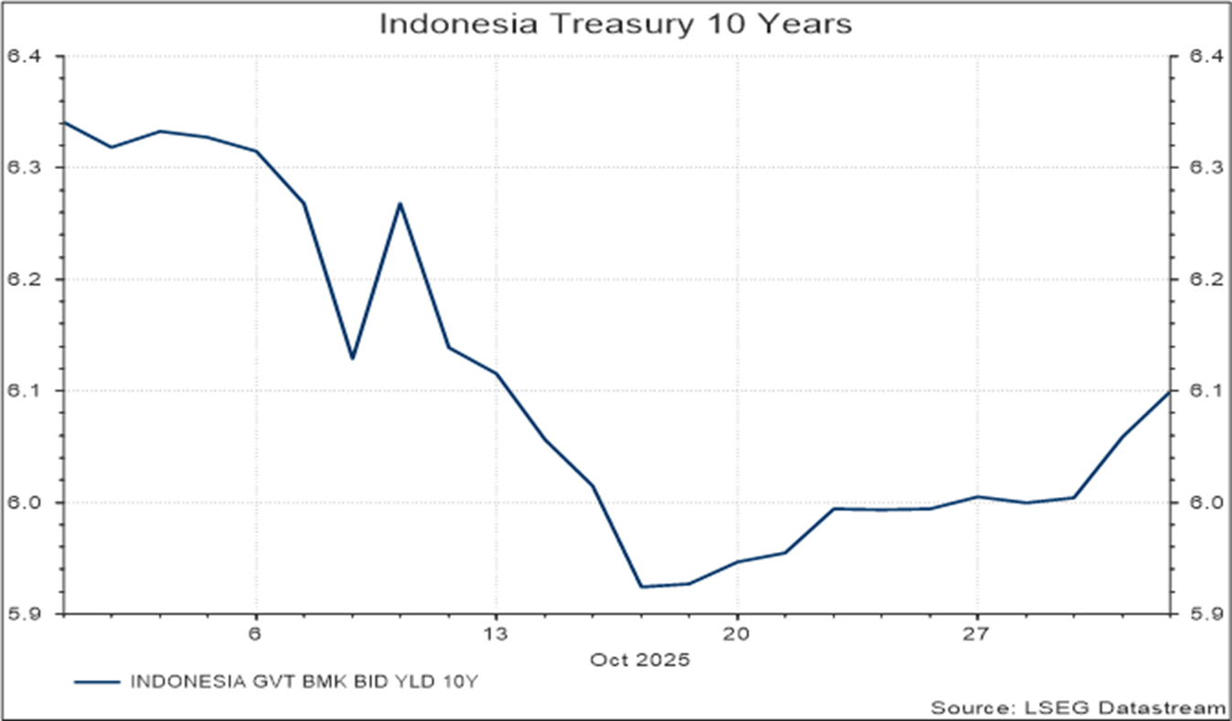 Di Indonesia, pasar obligasi mengalami koreksi sejalan dengan reaksi global terhadap nada hawkish The Fed dan keputusan Bank Indonesia (BI) yang sebelumnya menahan suku bunga. Yield IndoGB 10 tahun naik tipis ke 6,08% setelah sempat menguat tajam, sementara tenor 2 tahun stabil di 4,90%. Untuk obligasi USD, yield INDON 10 tahun terkoreksi ke 4,86% dan tenor 2 tahun ke 4,10%. Pergerakan ini lebih bersifat reaksi jangka pendek, sementara potensi penurunan yield masih terbuka lebar didukung oleh rendahnya rencana penerbitan obligasi pemerintah dan arah kebijakan fiskal yang pro-pertumbuhan.