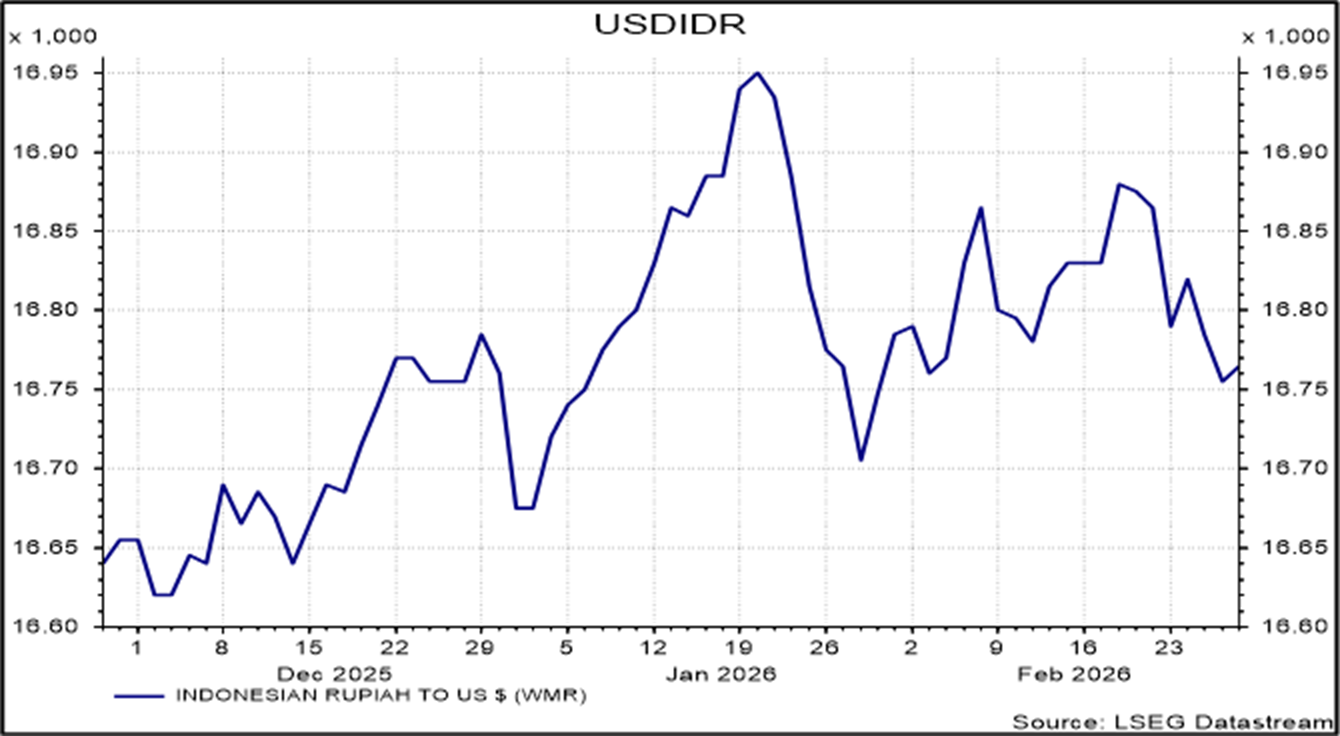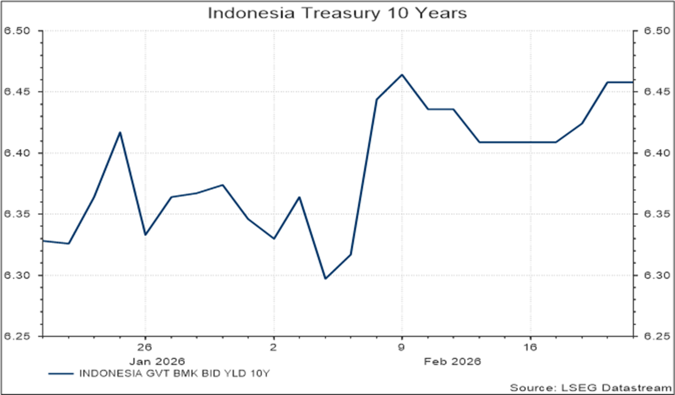 Indikator kepercayaan konsumen AS pada pekan ini tercatat lebih kuat dari perkiraan, mencerminkan optimisme rumah tangga yang tetap terjaga. Sementara itu, klaim pengangguran awal mingguan berada di bawah ekspektasi meskipun sedikit meningkat dibandingkan pekan sebelumnya, mengindikasikan kondisi pasar tenaga kerja yang masih relatif stabil. Di pasar keuangan, imbal hasil obligasi pemerintah AS tenor 10 tahun turun di bawah 4,05% untuk pertama kalinya tahun ini, seiring meningkatnya minat terhadap aset safe haven dan kekhawatiran terhadap valuasi sektor kecerdasan buatan (AI). Secara umum, lingkungan imbal hasil yang lebih rendah masih mendukung aset berisiko, namun volatilitas tetap tinggi karena pasar sangat responsif terhadap perkembangan geopolitik dan kebijakan perdagangan.