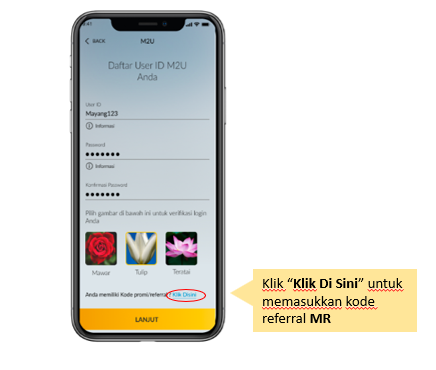 Lakukan pembukaan Maybank Tabungan U/U iB melalui M2U ID App dan masukan kode referral MR saat pembukaan rekening.