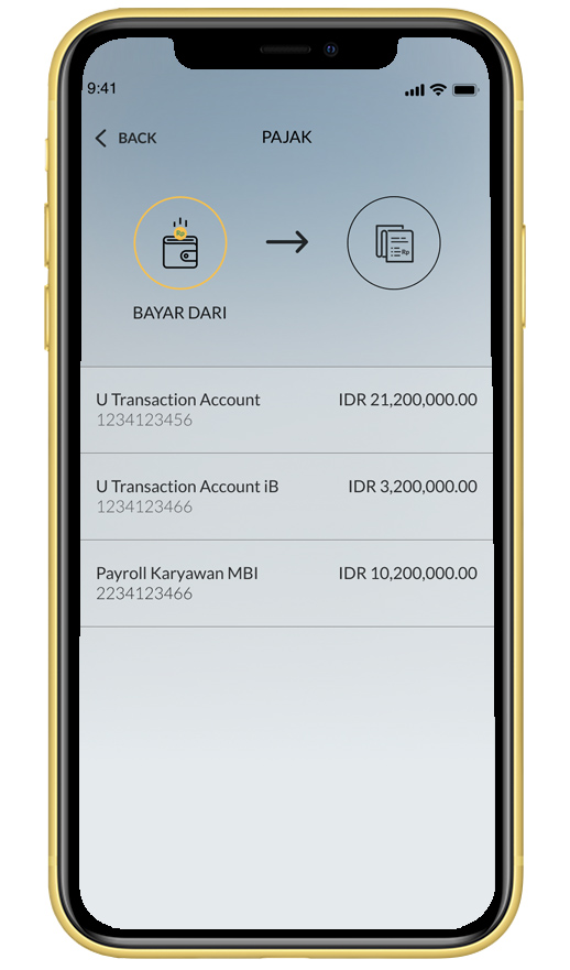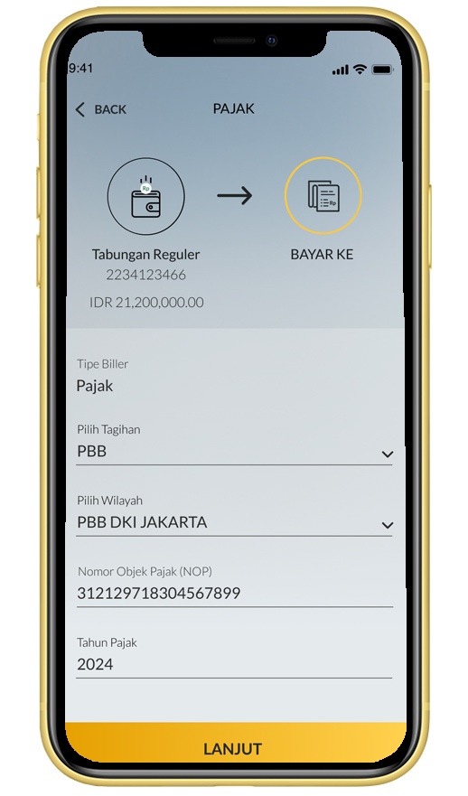 Pada tampilan rekening, pilih menu ‘Pembayaran’