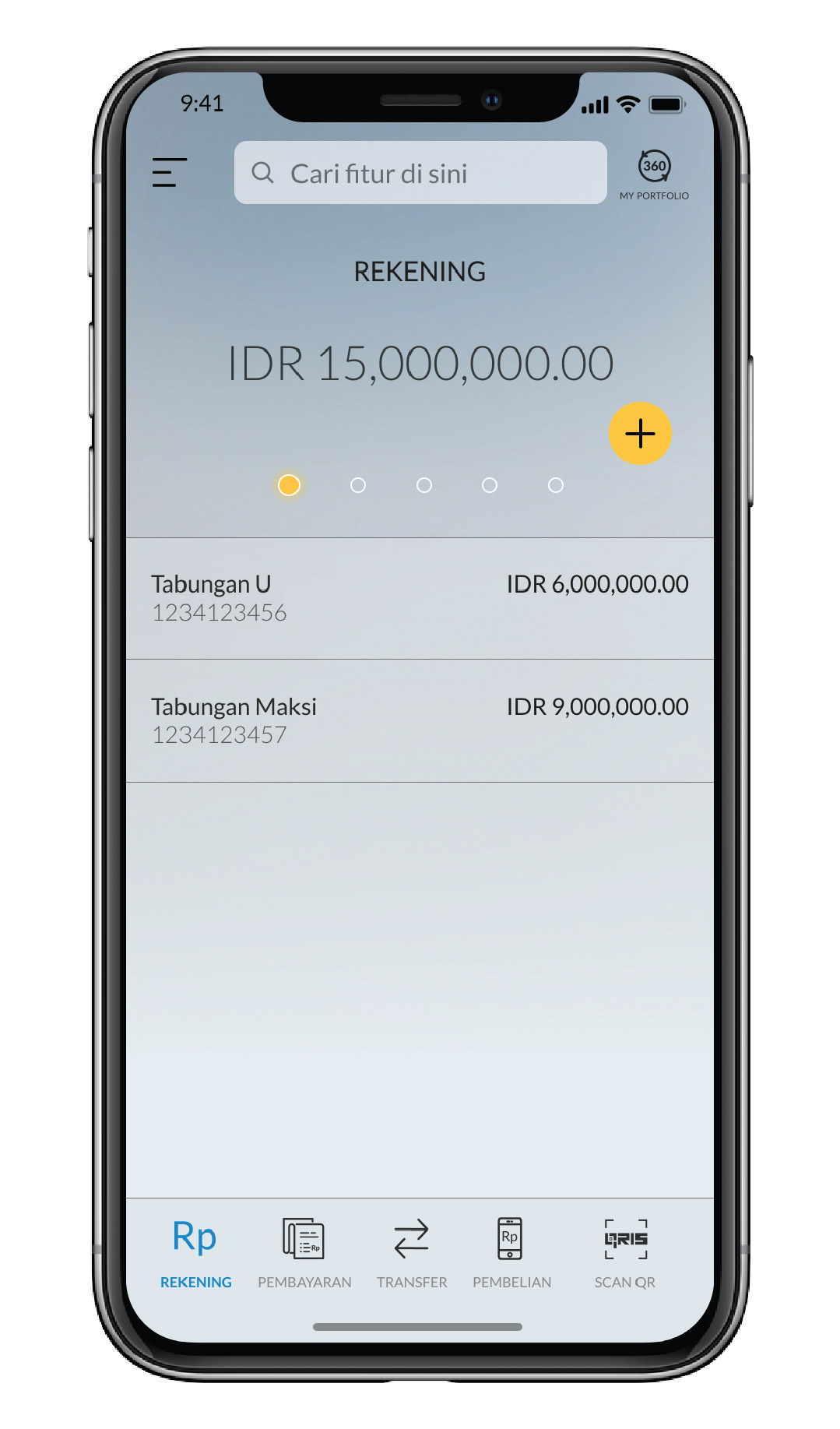 Pada tampilan rekening, pilih icon menu pada pojok kiri atas |