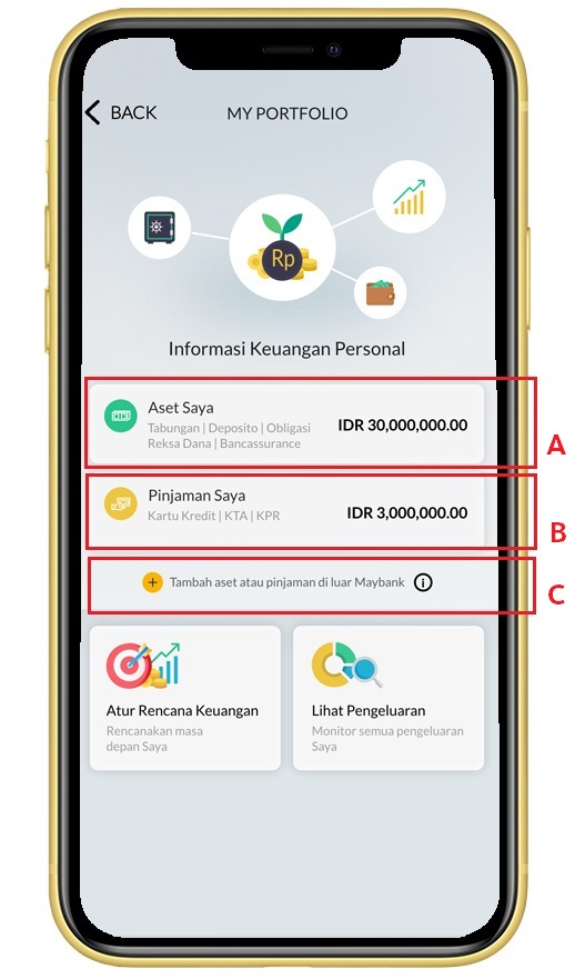 Anda juga bisa tambahkan aset atau pinjaman yang tidak terdapat di Maybank.