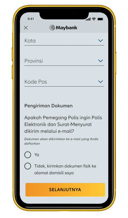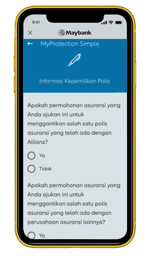 Jawab beberapa pertanyaan terkait kepemilikan polis, lalu klik ‘Selanjutnya’. |