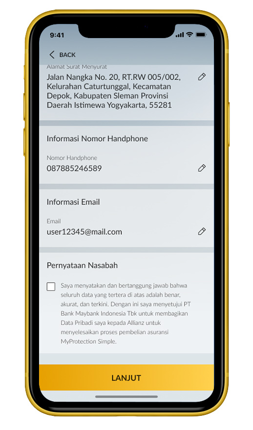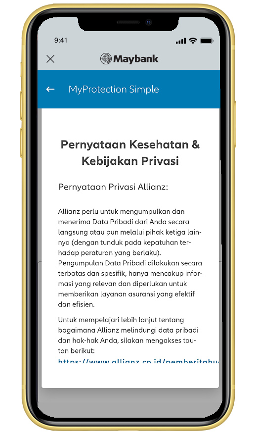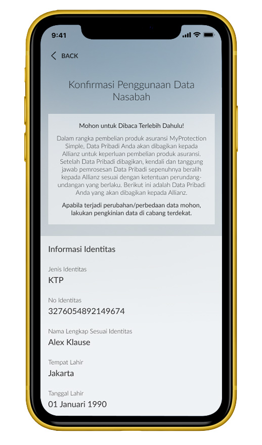 Cek dan konfirmasi data pribadi Anda yang akan dibagikan kepada Allianz. |