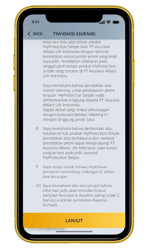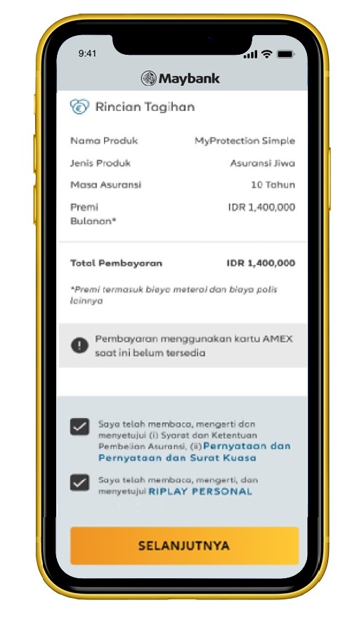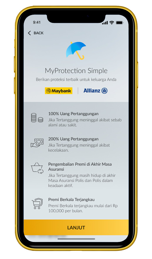 Pelajari ringkasan manfaat produk MyProtection Simple, lalu klik ‘Lanjut’. |