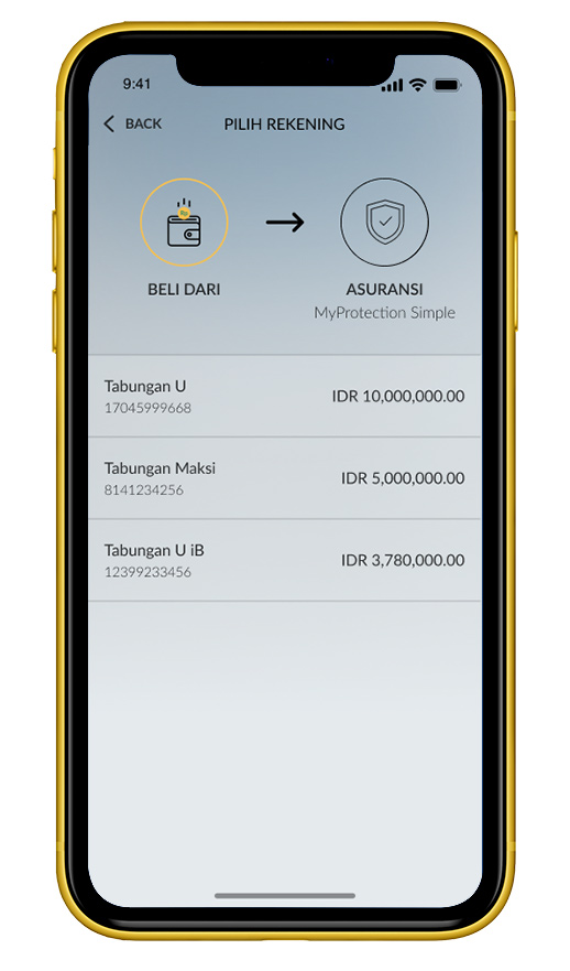 Pilih rekening sumber untuk pembayaran premi. |