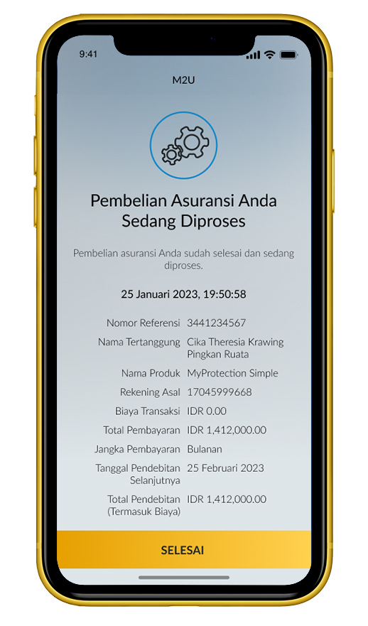 Selesai! Pembelian Asuransi MyProtection Simple telah berhasil diproses. |