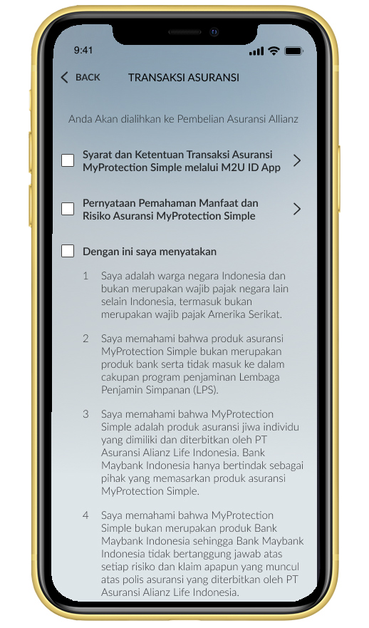 Panduan Pembelian MyProtection Simple melalui M2U ID App.
