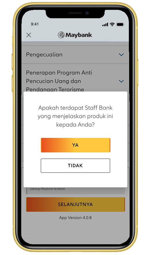 Bila Anda dibantu oleh staff bank, pilih ‘YA’, |