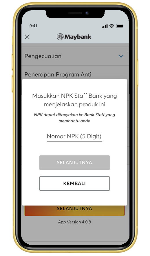 Masukkan ID staff (NPK) Maybank yang membantu Anda, lalu klik 'Selanjutnya' |